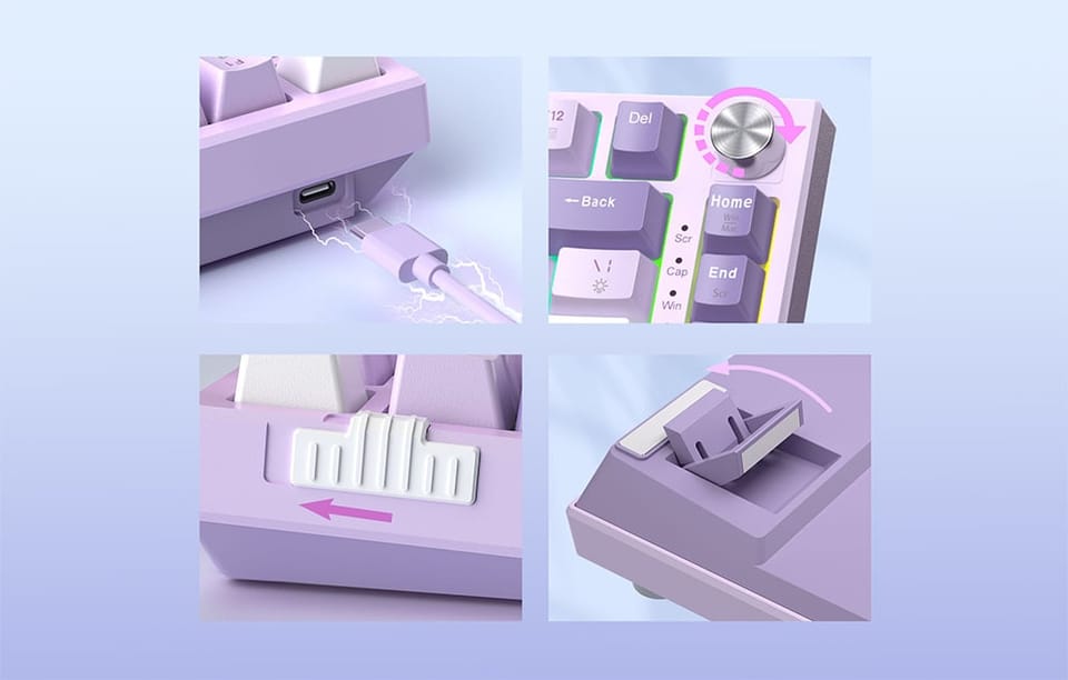 Wyposażona w przełączniki MageGee Blue Whale i Violet, SKY81 oferuje płynne, liniowe działanie idealne do dynamicznych gier i szybkiego pisania. System hot-swappable pozwala na łatwą wymianę przełączników (3-pinowe i 5-pinowe), umożliwiając pełną personalizację klawiatury według preferencji użytkownika.