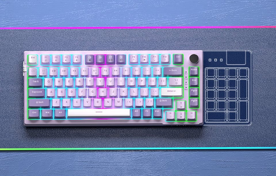 MageGee SKY81 to kompaktowa mechaniczna klawiatura gamingowa, która łączy nowoczesne technologie i stylowy design. Dzięki proporcjom 75% oraz fioletowej kolorystyce, SKY81 wyróżnia się nie tylko funkcjonalnością, ale również estetyką, która nadaje stanowisku unikalnego charakteru.