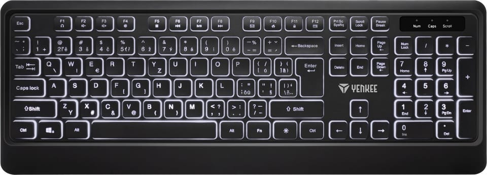 - Podświetlana klawiatura USB z niskoprofilowymi klawiszami i cichą membraną dla wygodnego i cichego pisania.