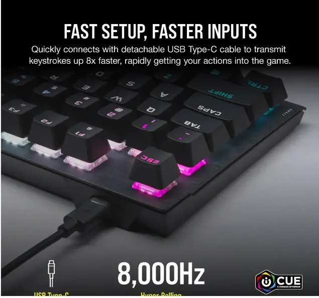 Szybko połącz się za pomocą odłączanego kabla USB typu C, aby przesyłać dane wejściowe nawet 8 razy szybciej, szybko przenosząc swoje działania do gry.