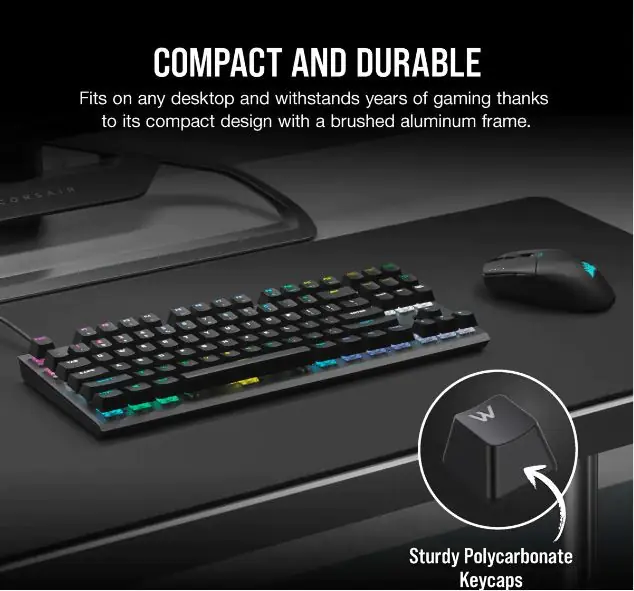 Kompaktowa aluminiowa konstrukcja K60 PRO TKL pasuje do każdego komputera stacjonarnego i wytrzymuje lata grania.