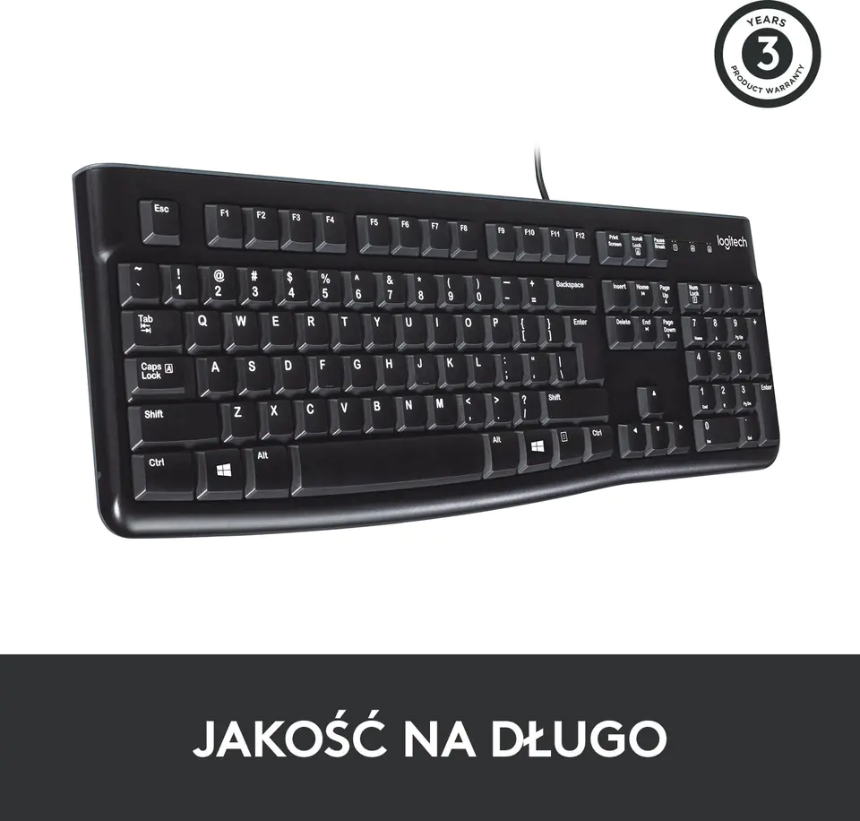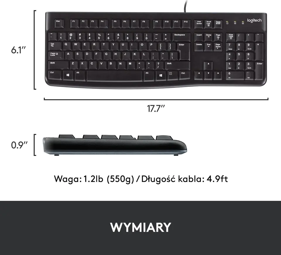 Klawiatura przewodowa K120 to niezawodny i trwały sprzęt wyposażony w klawiaturę numeryczną, o łatwej w użyciu konstrukcji, działający od razu po wyjęciu z pudełka. Wystarczy podłączyć tą przewodową klawiaturę przez USB i zacząć działać. Wymiary Wysokość: 155 mm Szerokość: 450 mm Głębokość: 23,5 mm Masa: 550 g Długość kabla: 150 cm Dane techniczne