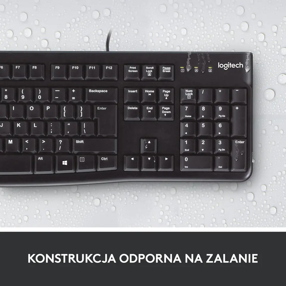 - Konstrukcja odporna na zalanie - odporność na wodę testowana na maksymalnych próbkach do 60 ml płynu. Nie zanurzać klawiatury w płynach.
