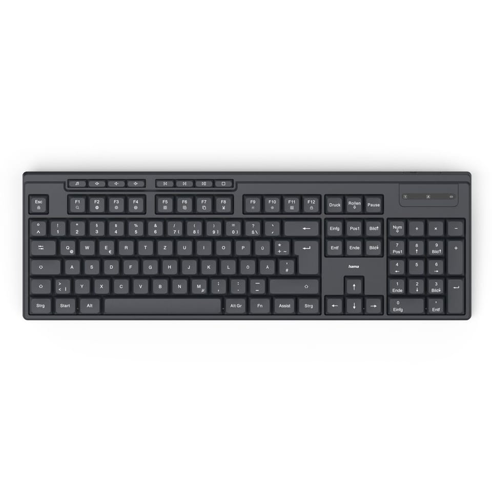 Bezprzewodowa wygoda Ta klawiatura bezprzewodowa Hama WK-200 to wygodne rozwiązanie do pracy i zabawy przy komputerze. Stabilne i pewne połącznie radiowe 2,4 GHz przez odbiornik USB-A zapewnia zasięg do 10 metrów. Jest zasilana baterią AA, dzięki temu nie musisz pamiętać o jej ładowaniu. Komfort i ergonomiaKlawiatura przewodowa Hama WK-200 jest wyposażona w ciche klawisze, które pozwalają na spokojną pracę bez hałasu i zakłócania spokoju innych, idealne rozwiązanie do biura. Natomiast składane nóżki umożliwiają dostosowanie kąta nachylenia klawiatury, co zapewnia wygodną pozycję dłoni podczas pisania. Przycisk AI Microsoft CopilotWbudowany przycisk asystenta AI Assist* pozwala na szybszy dostęp do funkcji pomocniczych Microsoft Copilot, co ułatwia korzystanie z oprogramowania. Jest to wygodne rozwiązanie dla osób ceniących sobie współpracę ze sztuczną inteligencją. *Funkcja przycisku AI dostępna po aktualizacji systemu do Microsoft Windows 11 oraz zainstalowaniu aplikacji Copilot.Klawiatura numerycznaPełnowymiarowa klawiatura przewodowa z blokiem numerycznym idealnie sprawdzi się w pracy i w domu. Zapewnia wygodę podczas codziennych zadań, takich jak pisanie dokumentów czy obsługa aplikacji biurowych. Klawisze multimedialneKlawiatura została wyposażona w osobne klawisze multimedialne, co umożliwia łatwą kontrolę odtwarzania muzyki czy filmów bez konieczności korzystania z dodatkowych kombinacji. Dodatkowo funkcja Fn-Lock pozwala na szybką zmianę przypisania klawiszy F1-F12, umożliwiając bezpośrednie korzystanie z funkcji multimedialnych bez potrzeby każdorazowego przytrzymywania klawisza Fn.Efektywne zarządzanie energiąBezprzewodowa klawiatura Hama WK-200 automatycznie przechodzi w tryb uśpienia po 5 minutach bezczynności, co pomaga oszczędzać energię. Dodatkowy przełącznik On/Off umożliwia szybkie wyłączenie klawiatury, co pozwala jeszcze bardziej zoptymalizować zużycie baterii i wydłużyć ich żywotność.Ekologiczny wybórObudowa i klawisze tej klawiatury bezprzewodowej Hama WK-200 są wykonane w 65% z plastiku ABS pozyskanego z recyklingu. Klawiaturę otrzymasz w opakowaniu w 100% wolnym od plastiku, wykonanym z papieru z certyfikatem FSC, potwierdzającym odpowiedzialne zarządzanie zasobami leśnymi i zrównoważoną produkcję.Specyfikacja: