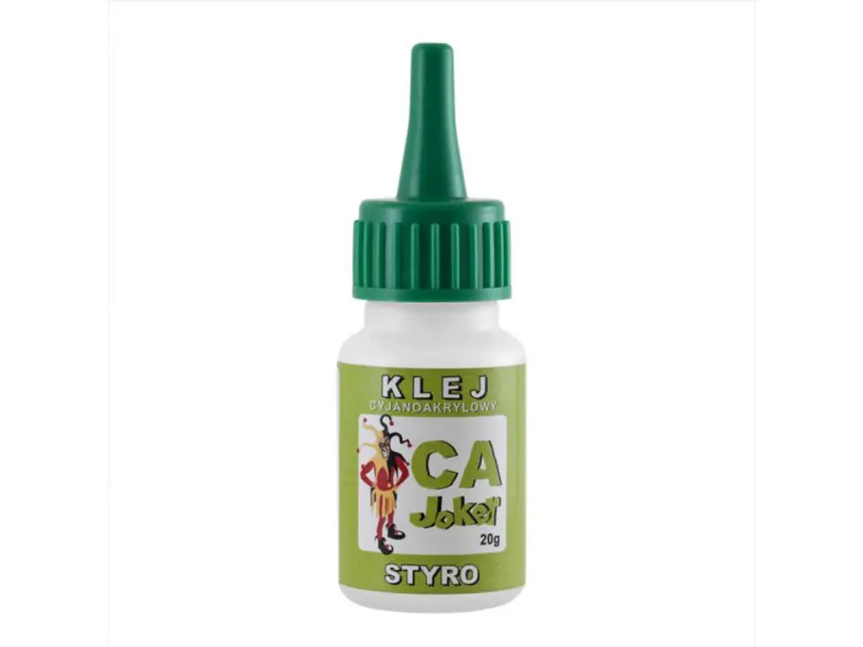 Klej cyjanoakrylowy Joker STYRO, w kilkanaście sekund sklei papier, styropian, depron i lekką piankę polistyrenową.Nie nadaje się do stosowania w precyzyjnym modelarstwie palstikowym. Nie zaleca się do klejenia metalu, szkła, drewna, gumy, plastiku, powierzchni ceramicznych, pianki EPP i innych materiałów.