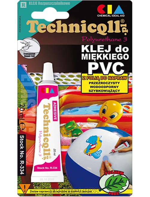 Wodoodporny klej do naprawy cienkościennych materiałów wykonanych z elastycznych tworzyw sztucznych – PVC, poliuretanu, tkanin powlekanych.