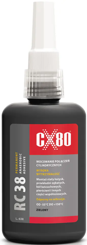 Klej anaerobowy do mocowania części walcowatych (cylindrycznych) o bardzo dużej sile łączenia. Wiąże pod wpływem kontaktu z metalowymi powierzchniami, przy braku dostępu powietrza.