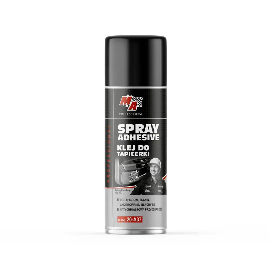 Uniwersalny klej w aerozolu przeznaczony do mocowania tapicerki, dywaników oraz innych materiałów w samochodach. Tworzy trwałe, elastyczne połączenie, odporne na wilgoć, wodę oraz temperaturę od -40°C do +70°C. Doskonale łączy gładkie i porowate powierzchnie. Nie kurczy się. Łączy również skórę, papier, metal, plastiki, gumę, karton, filc, korek, szkło, folię, drewno. UWAGA. Klej zawiera rozpuszczalnik. Przed klejeniem sprawdzić na niewidocznym fragmencie materiału.(Produkt nie jest zalecany do klejenia podsufitki w samochodach.)