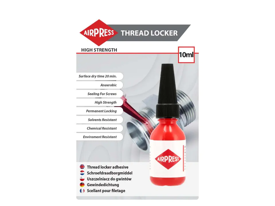 Uszczelniacz Airpress jest przeznaczony do zabezpieczania i uszczelniania połączeń gwintowych narażonych na ciśnienie. Środek zaczyna działać zaraz po nałożeniu warstwy pomiędzy ściśle przylegające powierzchnie metalowych gwintów i zapobiega luzowaniu się i wyciekom spowodowanym wstrząsami i wibracjami. Doskonała odporność na olej silnikowy, gaz bezołowiowy, etanol, biodiesel itp.