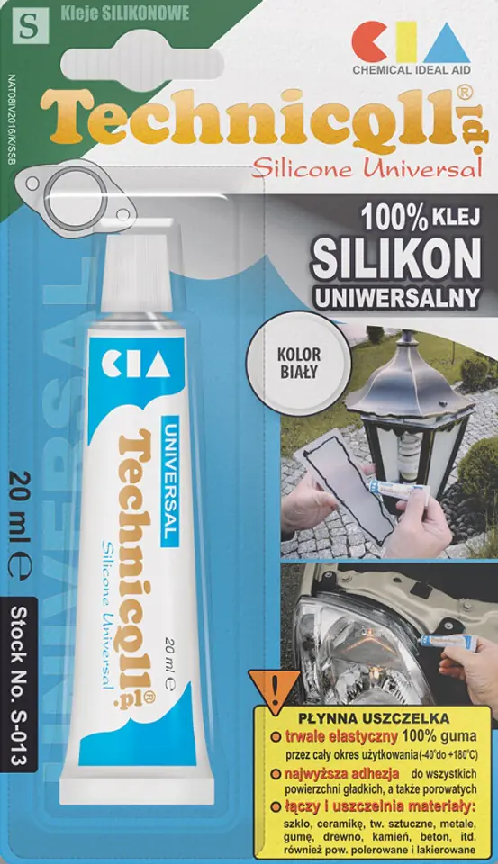 PARAMETRY:Suchy dotykowo: 12 - 15 min.Pełne utwardzenie: 2mm/24h Zakres temperatur: -40 st.C do 120 st.COkres ważności: 36 miesięcyWysokiej jakości, jednokomponentowy uniwersalny silikon na bazie polisiloksanów z octanowym systemem utwardzania. Tworzy trwale elastyczną spoinę odporną na czynniki atmosferyczne.CECHY:doskonale przylega do gładkich materiałówodporny na promieniowanie UV, wilgoć i temperaturętworzy gładką i połyskliwą fugę, nie kruszy się i nie pękajednokomponentowytrwale elastycznyZASTOSOWANIE:Do typowych zastosowań Silikonu Uniwersalnego należą:elastyczne uszczelnianie połączeń pomiędzy materiałami budowlanymi a elementami wykończeniowymiuszczelnianie witryn sklepowych, szyb wystawowych, lad, gablot, znaków, tablic, kasetonów reklamowych itp.szklenie okien (głównie w ramach drewnianych)w gospodarstwie domowym do drobnych prac naprawczych i hobbystycznychuszczelnianie łodzi, statków, samochodów, przyczep campingowychKORZYŚCI:do stosowania na stali nierdzewnej, szkle, ceramicedo stosowania wewnątrz i na zewnątrzwysoka estetykałatwy i prosty w użyciuzachowuje właściwości w temp. od -50°C do 120°C**