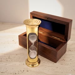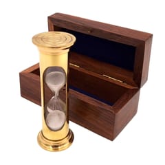 Mosiężna klepsydra ROUND STP99/4 w pudełku drewnianym - 3 minuty Informacje o produkcie: ·Materiał: mosiądz, szkło ·Kolor: złocisty ·Piasek: biały ·Czas przesypywania: około 3 minuty ·Wymiary: 12 x 5,5 x 5,5 cm Pudełko: ·Materiał: drewno ·Wyściełane granatowym filcem Klepsydra sprawdzi się jako: ·Prezent dla mistrza gry ·Upominek dla fana RPGów ·Upominek dla aspirującego rekordzisty Guinnessa ·Dekoracja na biurko