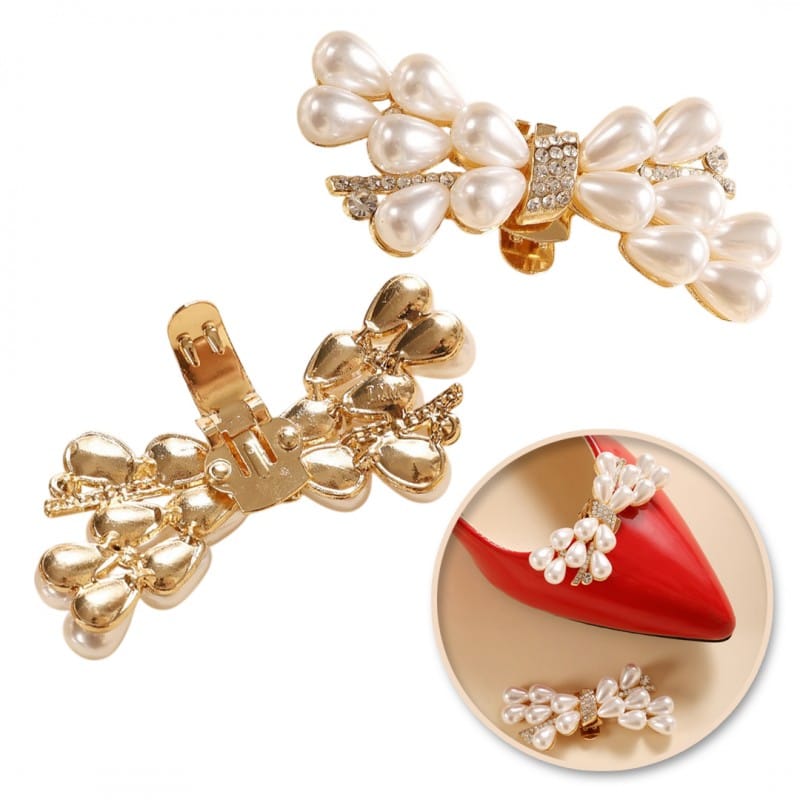 Klipsy do butów KOKARDKI z cyrkoniami i perełkami 2 szt. KDB52