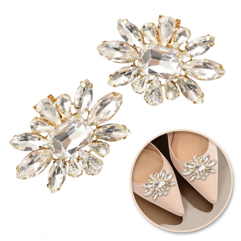 Wyjątkowe klipsy do butów Odmień wygląd swoich butów!Wyjątkowe klipsy do butów nie tylko na ślub! Możesz je dowolnie przekładać na wszystkie buty jakie masz - od szpilek po baleriny!Możesz je zamocować z przodu buta, na boku lub z tyłu! Za każdym razem będą wyglądać oszałamiająco! Wymiary:5,4cm x 3,8cm Wymiary opakowania:12,5cm x 9cm Waga:24g netto / 29g brutto