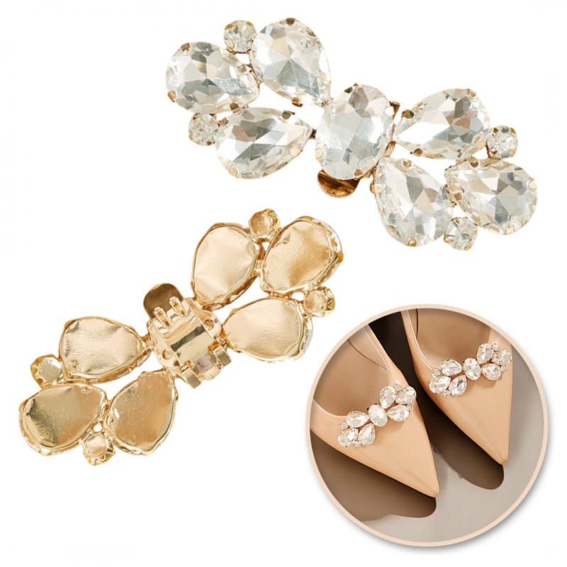 Wyjątkowe klipsy do butów Odmień wygląd swoich butów!Wyjątkowe klipsy do butów nie tylko na ślub! Możesz je dowolnie przekładać na wszystkie buty jakie masz - od szpilek po baleriny!Możesz je zamocować z przodu buta, na boku lub z tyłu! Za każdym razem będą wyglądać oszałamiająco! Wymiary:7cm x 3cm Wymiary opakowania:12,5cm x 9cm Waga:32g netto / 37g brutto