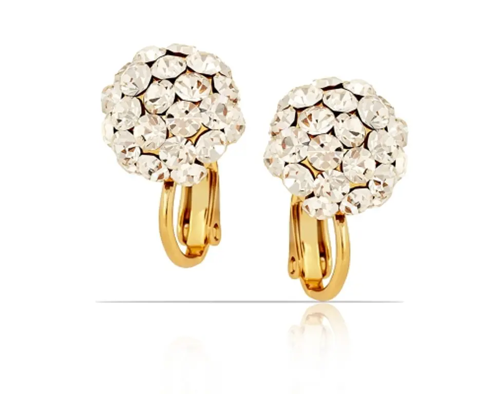 Klipsy z kryształkami Preciosa lśnią niesamowitym blaskiem. Długość 1,6cm, szerokość 1,2cm. Klipsy pozłacane.