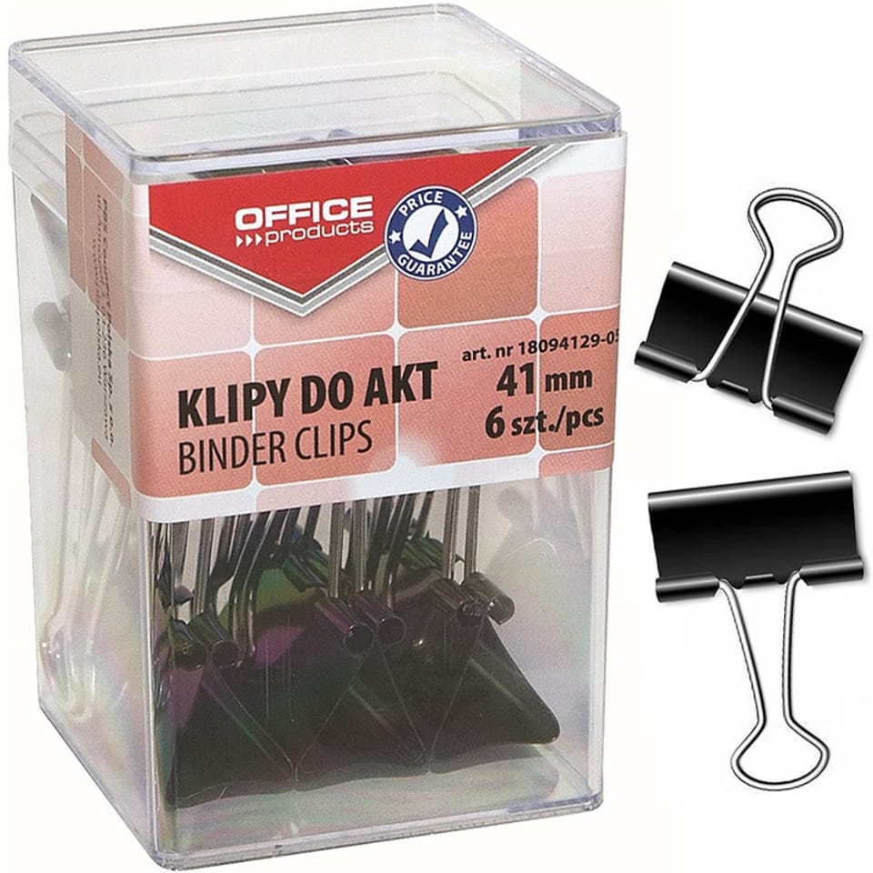 Klipy do dokumentów Office Products 41mm czarne 6