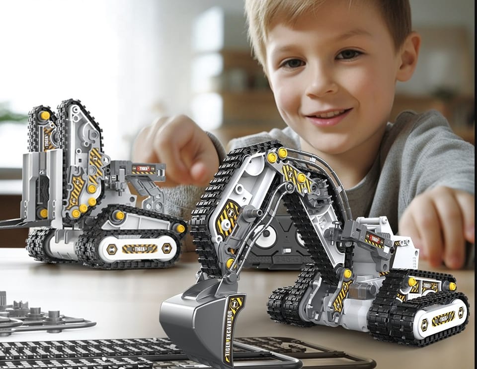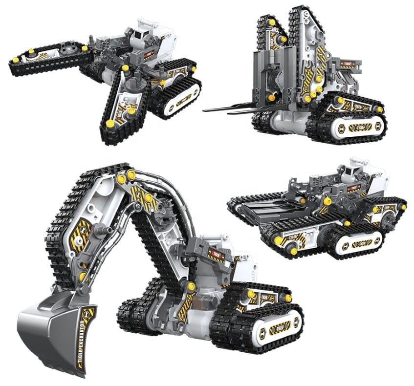 Klocki Konstrukcyjne Zestaw do składania MASZYNY BUDOWALNE 4w1 RC Koparka Czołg Wózek Widłowy