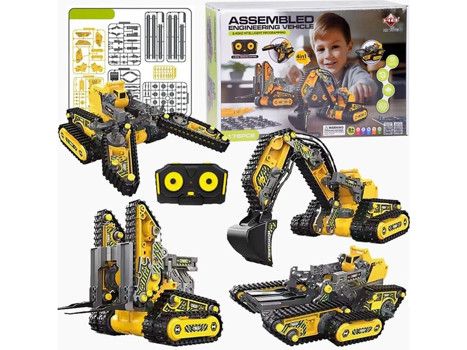 Klocki Konstrukcyjne Zestaw do składania MASZYNY BUDOWALNE 4w1 RC Koparka Czołg Wózek Widłowy