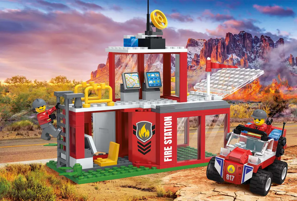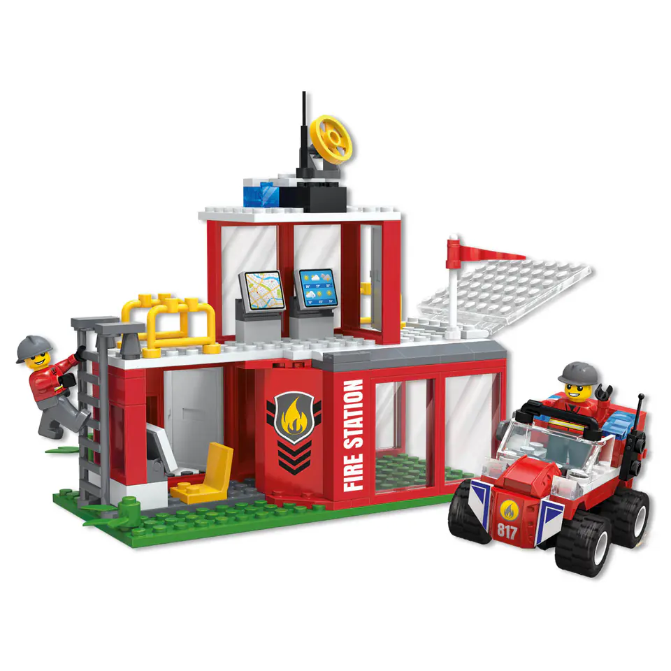 - klocki do złożenia remizy strażackiej z centrum dowodzenia i garażem