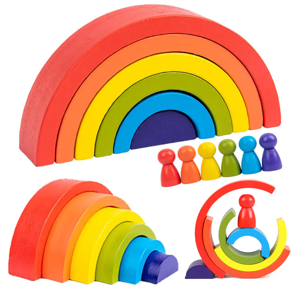 KLOCKI DREWNIANE GRA LOGICZNA ZRĘCZNOŚCIOWA TĘCZA Z PIONKAMI JHTOY-281