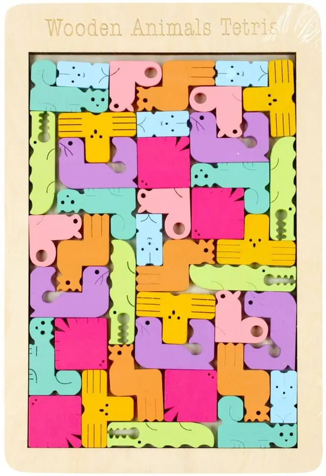 Zalerty produktu: drewniane klocki to najlepszy prezent dla dzieci, klocki w różnych kształtach na wzór popularnej gry Tetris. Klocki składają się z wielu elementów w różnych kształtach z wizerunkiem zwierzątek co umili zabawę każdemu dziecku. Uwaga Zabawki posiadają małe elementy dlatego też dobrze by dzieci bawiły się pod opieką dorosłych. Pozwól dziecku na kreatywność. Zawartość zestawu: 41 kolorowych klocków. Całość wykonana z drewna. Wymiary/waga/baterie: wymiary produktu dł. x wys. x gł. cm : 18x27x1, wymiary opakowania dł. x wys. cm : 18x27, waga produktu w opakowaniu kg : 0,18 kg, nie wymagają zasilania bateriami. Produkt przeznaczony dla dzieci w wieku: 3 . Pakowany w foliuje. W kartonie zbiorczym po 120 szt.