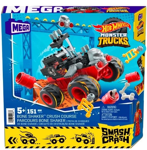 Przygotuj się na kraksy i demolkę. Ten Monster Truck do zbudowania ma kultową ozdobę na maskę w kształcie czaszki i autentyczne detale, a w zestawie są też rampa i przeszkody do pokonania. Buduj, ścigaj się, rozbijaj i rób kraksy posadź dołączoną mikrofigurkę kierowcy za kierownicą, odciągnij i puść pojazd, a potem podziwiaj, jak po uderzeniu odpada maska. Zestaw Hot Wheels Bone Shaker Kaskaderska sztuczka inspirowany ulubionym modelem zawiera 151 elementów Ma funkcję jazdy po odciągnięciu, a ozdoba na maskę w kształcie czaszki odpada po uderzeniu W zestawie są 1 rampa, przeszkody i 1 mikrofigurka kierowcy Elementy są kompatybilne ze wszystkimi zestawami konstrukcyjnymi Hot Wheels oraz z klockami innych wiodących marek. Zabawka pobudza kreatywność i uczy rozwiązywania problemów, idealna dla konstruktorów powyżej 5 roku życia.