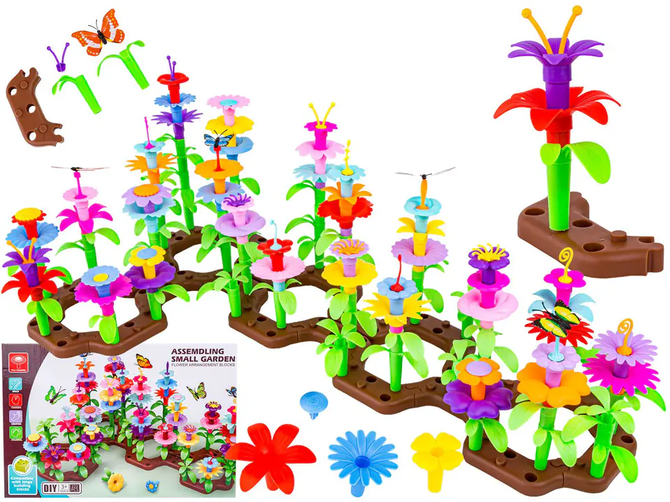 Klocki Konstrukcyjne 222 elementy, Zestaw Do Zbudowania Kwiatowej Kompozycji, Ogród + Kwiatki