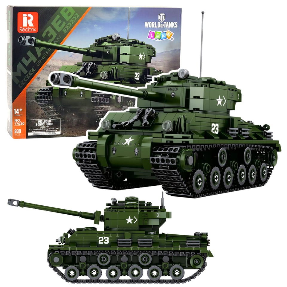 CZOŁG SHERMAN M4A3E8 KLOCKI KONSTRUKCYJNE SKALA 1:30 839 ELEMENTÓW