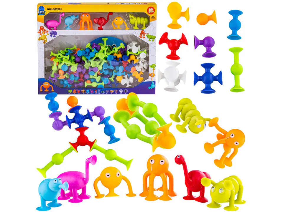 Silikonowe przyssawki to zabawka do samodzielnego zaprojektowania i zbudowania. Zestaw składa się z wielu silikonowych elementów - co pozwala na dowolne budowanie wszystkiego co wymyśli dziecko. Zabawka, która przemieni dziecko w małego architekta, pobudzi wyobraźnię i pomoże rozwinąć zdolności konstruowania. Przyssawki to niezwykłe klocki, które można łączyć zarówno ze sobą jak i z inną, gładką powierzchnią.