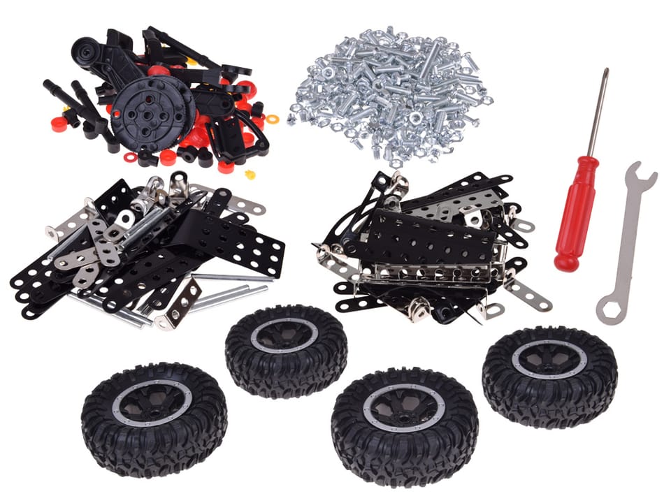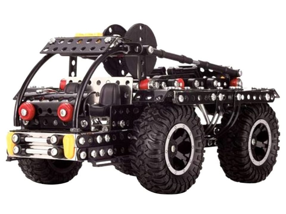 Zestaw konstrukcyjny to doskonała propozycja prezentu dla dzieci i młodzieży oraz dorosłych, którzy lubią wyzwania i kreatywną zabawę. Składa się aż z 475 elementów, głównie metalowych części konstrukcyjnych połączonych z plastikowymi dodatkami i dużymi gumowymi kołami. Dzięki temu gotowy model jest stabilny, solidny i wygląda bardzo realistycznie.