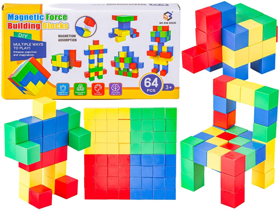 Klocki Magnetyczne 3D Konstrukcyjne KOSTKI BUDOWLANE Sześciany Zestaw Klocków 64 el.
