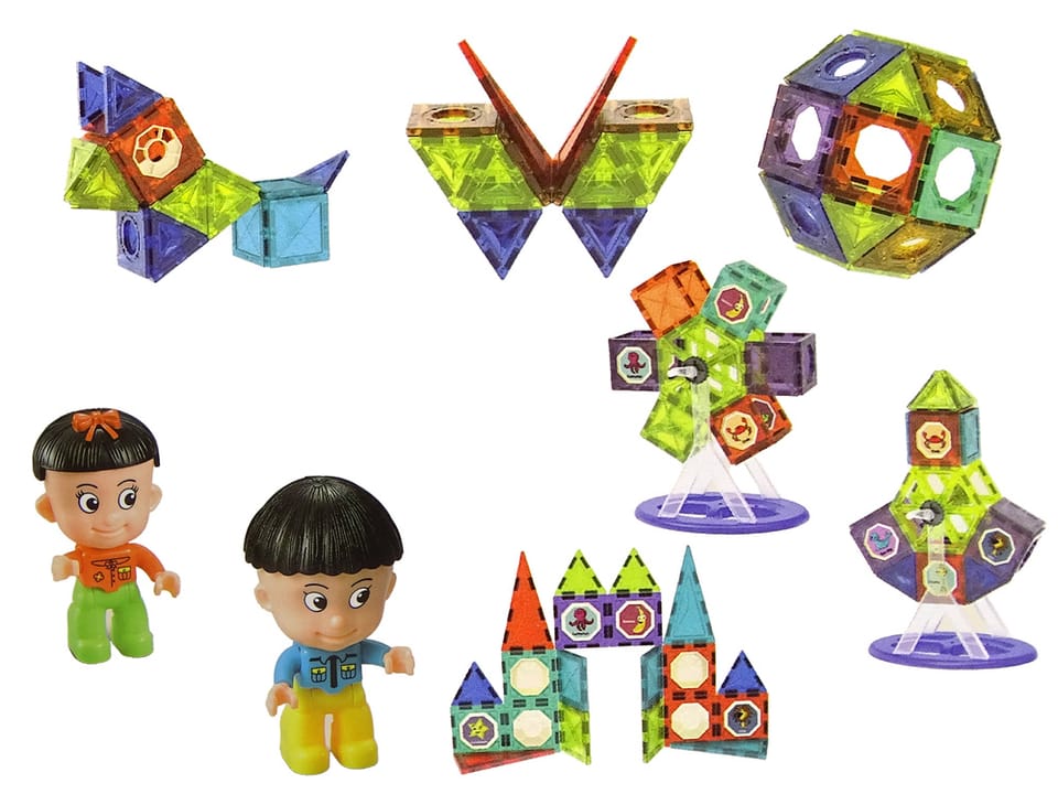 Każdy klocek ma na końcu magnesy lub zatrzaski, które przyciągają się i umożliwiają tworzenie trójwymiarowych budowli, zamków, układanek domino i wiele więcej. Możliwości są praktycznie nieograniczone, co daje dziecku wielogodzinną i wspaniałą zabawę.