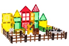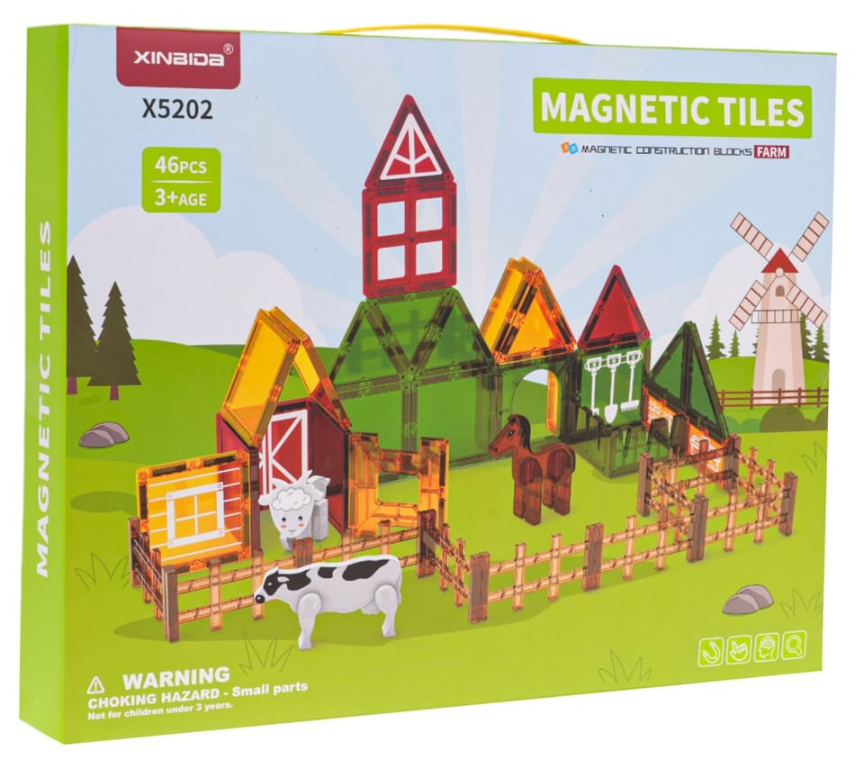 Kolorowe klocki magnetyczne z serii farma dla dzieci od 3-go roku życia. Zestaw składa się z 42 klocków w różnych kolorach i kształtach. Prócz klocków mamy również figurkę baranka, konika i krówki. Z klocków ułożyć możemy farmę, w obrazkowej instrukcji widać, jak zrobić to krok po kroku, ale możemy również zbudować farmę według własnego pomysłu. Zabawa klockami pobudza wyobraźnię i kreatywność dziecka, ćwiczy zdolności manualne i koncentrację. Funkcje zestawu: - odpowiedni dla dzieci od 3-go roku życia, - wykonany z najlepszej jakości materiałów w żywych kolorach, - pobudza kreatywność i ćwiczy koncentrację.