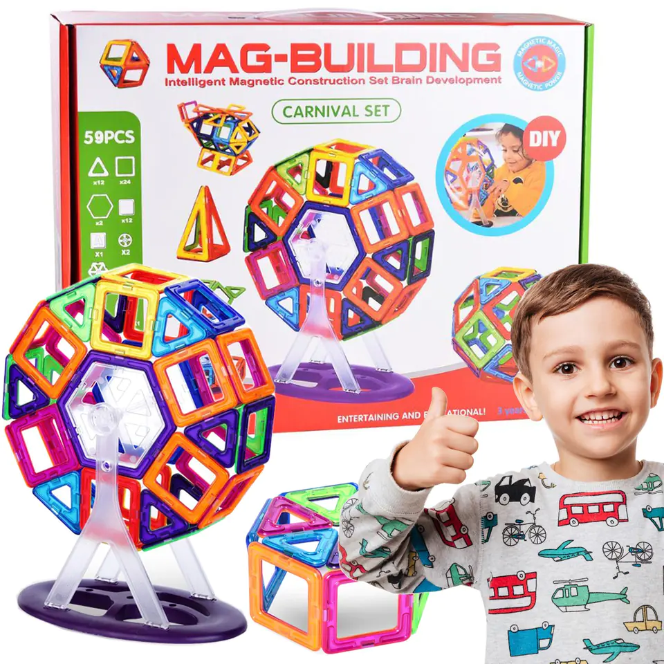 ❤️Zestaw klocków magnetycznych składający się z 59 elementów.