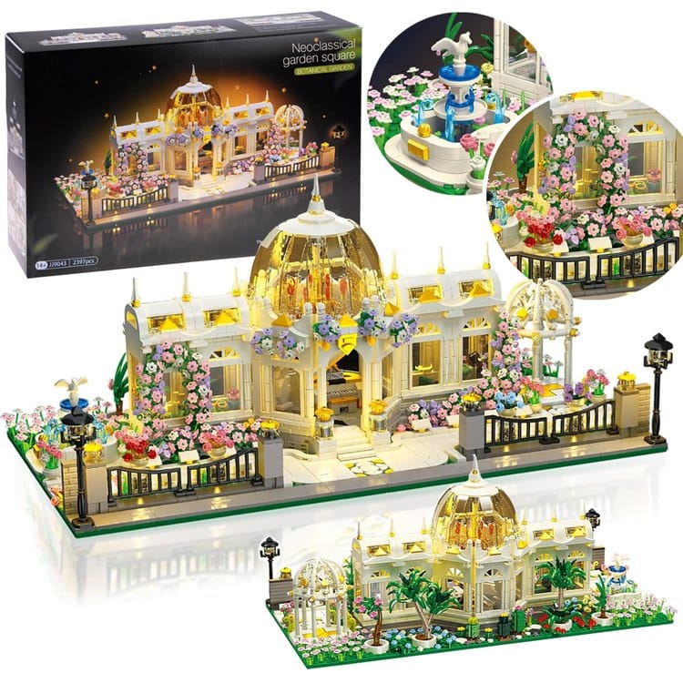 Klocki konstrukcyjne - Neoklasyczny pałac ogrodowy „Ogród Botaniczny" z przezroczystą kopułą i efektami świetlnymi