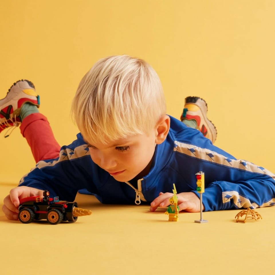 Pojazd wiertłowyElectro strzela piorunem w sygnalizację świetlną, aby ukraść prąd! Dlatego Spin pędzi na miejsce zdarzenia swoim niesamowitym pojazdem wiertłowym LEGO 4+. Obrotowe wiertło z przodu sprawia, że nic nie stanie mu na drodze! Kiedy Spin rzuca gigantyczną, złotą sieć na elektryzującego złoczyńcę, tym razem to Electro będzie w szoku!
