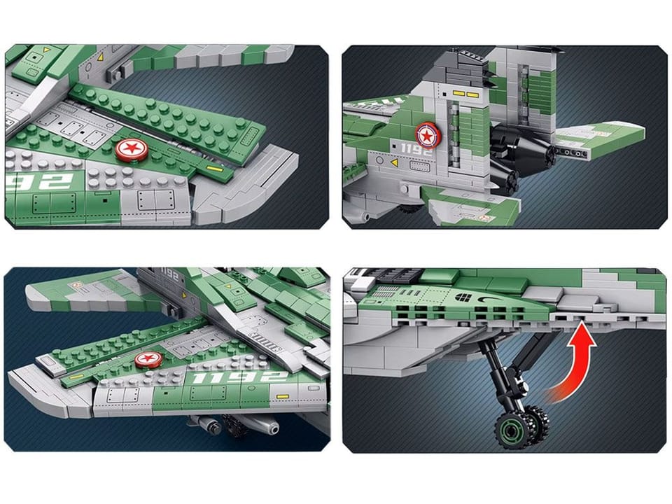 Przenieś się w świat lotnictwa wojskowego dzięki temu imponującemu zestawowi 1290 klocków, który pozwala zbudować wierną replikę legendarnego myśliwca MIG-29. Ten jednomiejscowy, dwusilnikowy samolot powstał w Związku Radzieckim w latach 70. jako odpowiedź na nowoczesne myśliwce zachodnie i od dekad budzi podziw dzięki wyjątkowej zwrotności, mocy silników i zdolności do misji dalekiego zasięgu.