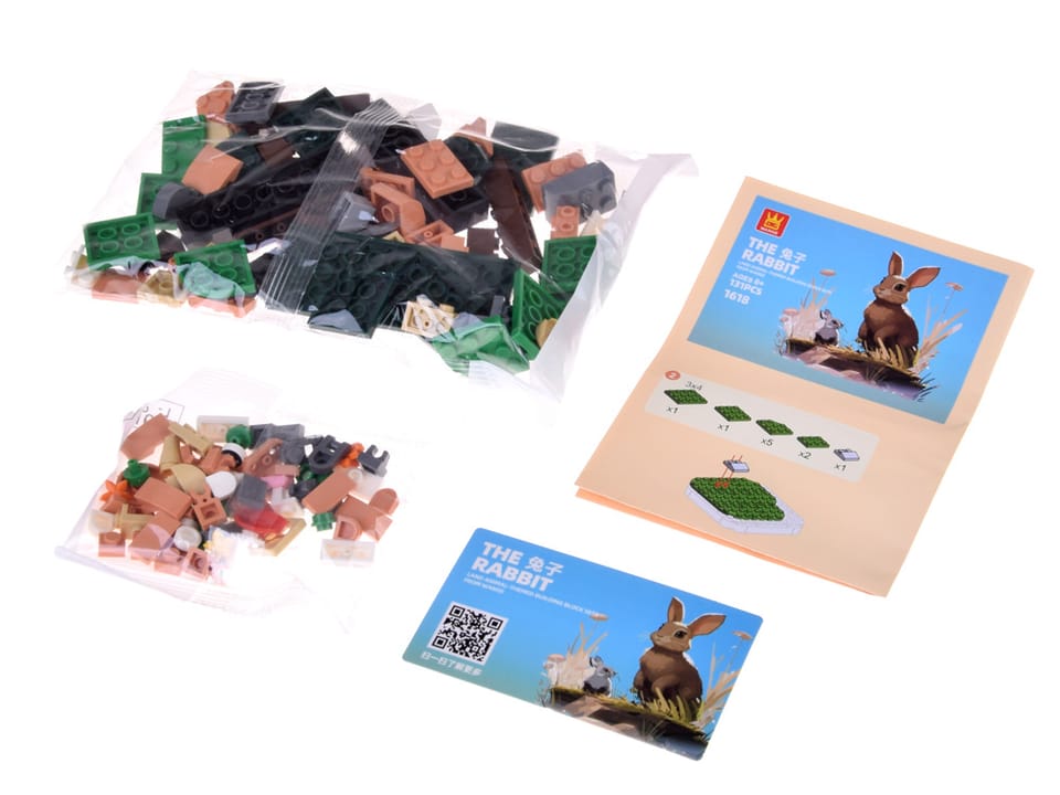 Królik - 131 elementów Zwinny i uroczy królik, który żyje w norach i skacze po łąkach. Jest symbolem szybkości i czujności. Ten zestaw pozwala dzieciom poznać jego zwyczaje i zbudować model pełen szczegółów.