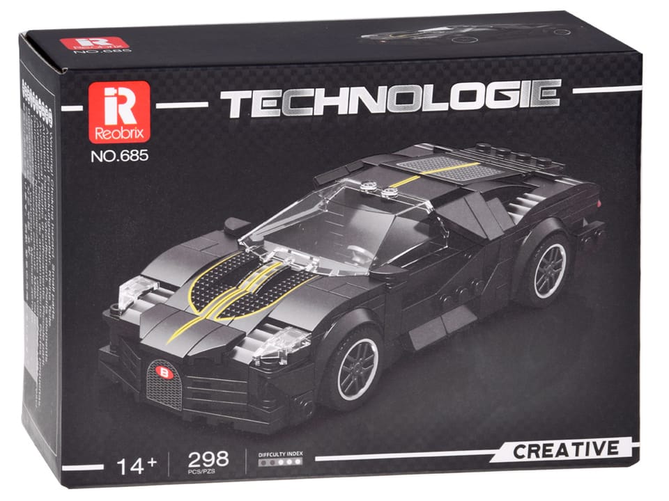 Auto utrzymane jest w głębokim czarnym kolorze, z charakterystycznym, aerodynamicznym kształtem i dopracowanymi detalami, które nadają mu wyjątkowy, ekskluzywny charakter. Zestaw składa się z 298 elementów, które pozwalają zbudować efektowny model, wiernie oddający formę i styl nowoczesnych hipersamochodów.