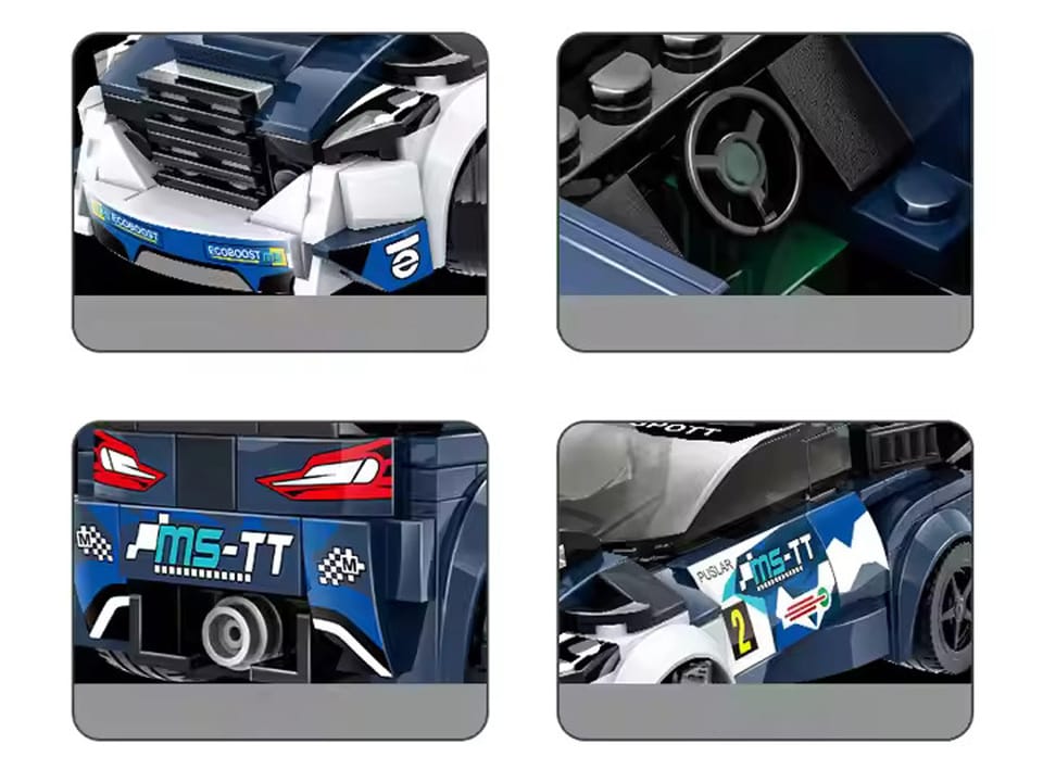 Zestaw składa się z 164 starannie wykonanych elementów, które łatwo łączy się w stabilną konstrukcję. Dodatkowo w komplecie znajdują się naklejki, dzięki którym młody konstruktor może nadać samochodowi indywidualny, sportowy charakter.