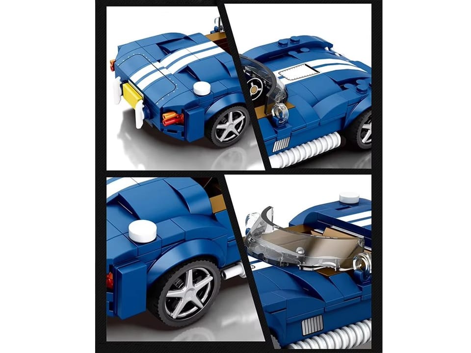Auto utrzymane jest w intensywnie niebieskim kolorze, z kontrastowymi detalami i sportowym wykończeniem. Zestaw składa się z 312 elementów, co pozwala zbudować efektowny i stabilny model o wiernie odwzorowanym wyglądzie klasycznego roadstera.