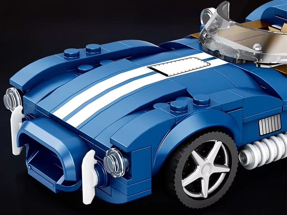 Klocki techniczne - niebieskie sportowe auto w stylu klasycznego roadstera