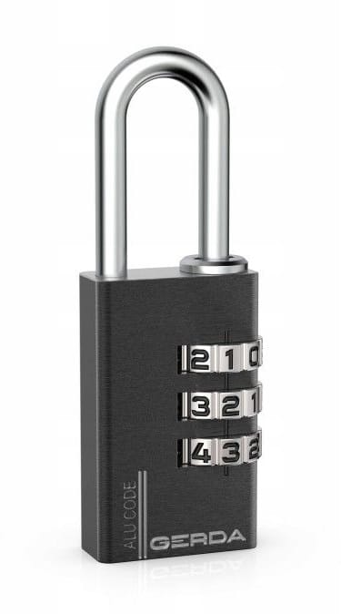 Kłódka pałąkowa KAS S20 marki Gerda to lekka, poręczna i stylowa kłódka szyfrowa, która doskonale sprawdza się w zabezpieczaniu drobnych przedmiotów. Wykonana z trwałego aluminium w eleganckim czarnym kolorze. Dzięki 3-dyskowemu mechanizmowi szyfrowemu umożliwia szybkie otwieranie i zamykanie bez klucza, a jednocześnie gwarantuje bezpieczeństwo.