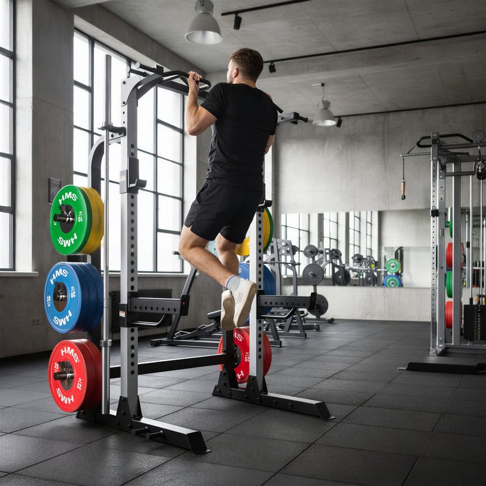 Klatka treningowa HMS Fitness KLT5432 to solidny half rack, który zapewnia pełną swobodę ćwiczeń siłowych przy zachowaniu kompaktowych wymiarów. Idealna do domowej siłowni, studia treningowego oraz stref funkcjonalnych – zaprojektowana z myślą o bezpieczeństwie, stabilności i intensywnym treningu siłowym. Wytrzymała konstrukcja klasy HMS Fitness Model KLT5432 został wykonany z masywnych stalowych profili o wymiarach 7,5 × 7,5 × 0,2 cm, co gwarantuje wysoką sztywność całej konstrukcji. To rozwiązanie, które bez problemu radzi sobie z dużymi obciążeniami i dynamiczną pracą podczas przysiadów, wyciskania czy podciągania. Dzięki solidnej podstawie i przemyślanej geometrii, klatka half rack od HMS Fitness zapewnia stabilność nawet przy maksymalnym obciążeniu. Bezpieczny trening z dużym obciążeniem Klatka została wyposażona w: regulowane J-hooki, podpory bezpieczeństwa, drążek do podciągania z wieloma opcjami chwytu. Takie akcesoria pozwalają na zaawansowany trening siłowy bez kompromisów. To idealne rozwiązanie zarówno dla początkujących, jak i zaawansowanych użytkowników, którzy oczekują pełnej kontroli i bezpieczeństwa. Funkcjonalne przechowywanie obciążeń olimpijskich Half rack KLT5432 posiada praktyczne bolce na talerze obciążeniowe, dzięki którym utrzymasz porządek w strefie treningowej. Bolce są wytrzymałe i ułożone na różnych wysokościach, co pozwala na wygodne przechowywanie talerzy i szybki dostęp do nich w trakcie treningu. Trening z gumami oporowymi – jeszcze większa funkcjonalność Klatka treningowa HMS Fitness KLT5432 została wyposażona w specjalne dodatkowe pręty do mocowania gum oporowych, umieszczone zarówno w górnej, jak i dolnej części konstrukcji. To rozwiązanie znacząco rozszerza możliwości treningowe i pozwala na efektywny trening z gumami power band. Wszechstronność treningowa Dzięki swojej konstrukcji, klatka treningowa HMS Fitness umożliwia wykonanie szerokiego zakresu ćwiczeń: przysiady ze sztangą, wyciskanie na stojąco i na ławce, podciąganie na drążku, martwy ciąg, ćwiczenia akcesoryjne z wykorzystaniem podpór, trening z gumami oporowymi To uniwersalny half rack treningowy, który stanowi solidną bazę każdej domowej siłowni. Dlaczego warto wybrać HMS Fitness KLT5432? solidna stalowa konstrukcja, wysokie dopuszczalne obciążenia, kompaktowa forma typu HALF RACK, regulowane elementy zwiększające bezpieczeństwo, możliwość kotwienia klatki do podłogi, marka HMS Fitness – sprawdzona jakość i trwałość. Specyfikacja: Wymiary klatki Wysokość: 223 cm Szerokość: 164 cm Głębokość: 129 cm Odległość między profilami: 108 cm Profil przedni: 7,5 x 7,5 x 0,2 cm Profil tylny: 7,5 x 5 x 0,2 cm Średnica otworu w profilu: 2,7 cm Drążek do podciągania Długość: 103 cm Głębokość: 23,5 cm Średnica części chwytnej: 2,8 cm Maksymalne obciążenie: 150 kg Regulacja wysokości 28-stopniowa Zakres od 36,5 do 173,5 cm Bolce na obciążenia (olimpijski standard) Długość: 19 cm Średnica: 5 cm Podpory bezpieczeństwa Długość: 50 cm Szerokość: 5 cm Maks. obciążenie: 300 kg Uchwyty J-Hook Maks. obciążenie: 300 kg 2 uchwyty na gryf (montowane na wysokości 185 cm) 8 prętów do zaczepienia gum 6 zacisków sprężynowych Waga: 91 kg Uwagi: Gwarancja 24 miesiące Importer: Abisal Sp. z o.o.| Polska | 41-807 Zabrze | ul. Pyskowicka 17 | e-mail: abisal@abisal.plAbisal Sp. z o.o. deklaruje, iż produkty sprzedawane przez firmę są bezpieczne i spełniają wymagania zawarte w Ustawie o ogólnym bezpieczeństwie produktów z dnia 12 grudnia 2003r. (Dz.U. z dnia 31 grudnia 2003r.)