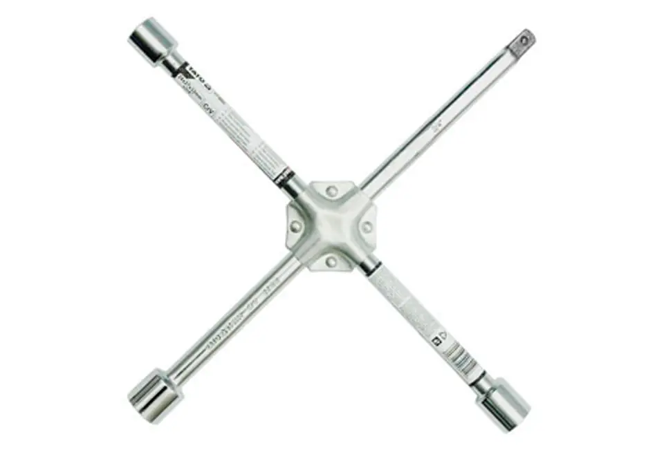 Posiada 4 ramiona z nasadkami, dostosowanymi do wszystkich sześciokątnych, metrycznych rodzajów śrub i nakrętek stosowanych w samochodach osobowych i lekkich dostawczych.