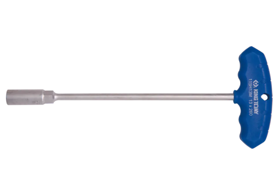 Klucz nasadowy z uchwytem "T King Tony, końcówka nasadowa 6-kątna w rozmiarze 5 mm, długość robocza 260 mm, długość całkowita 300 mm. Narzędzie wykonane jest z wysokiej jakości stali chromowo-wanadowej, chromowane, ergonomiczna rączka wykonana jest z tworzywa PP.