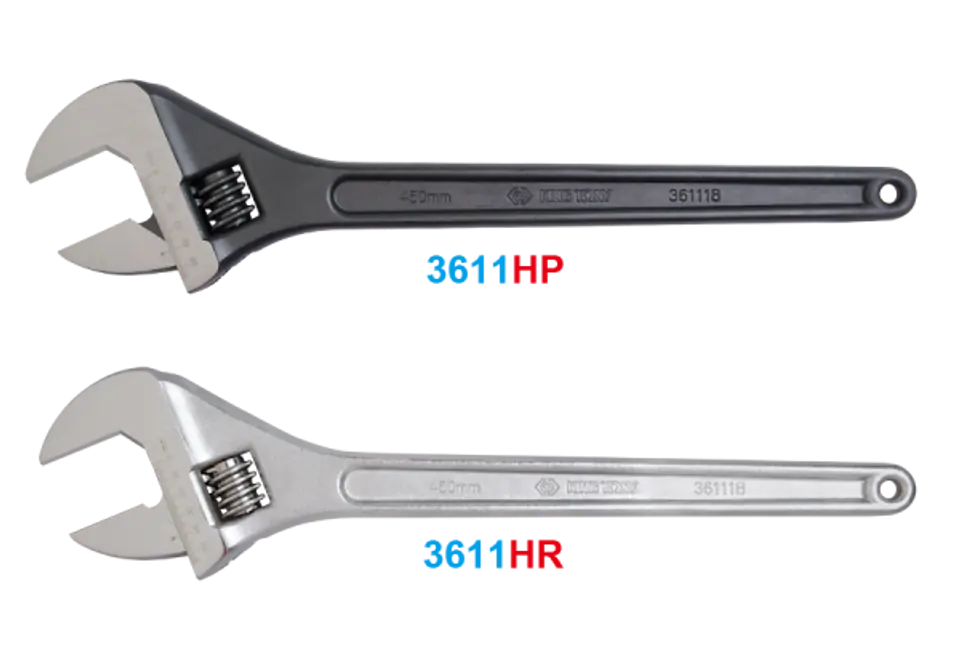Klucz nastawny wykonany z wysokiej jakości stali chromowo-wanadowej, polerowany, kryty fosforanami oraz chromowany. Długość klucza 460 mm, maksymalny rozstaw 53 mm Karta produktu - 3611-18HP