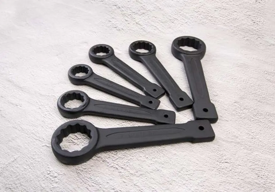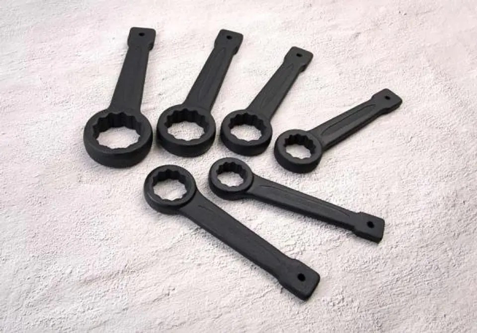 Wykonany z wysokiej jakości stali, powierzchnia fosforowana. Narzędzie zgodne z normą DIN 7444. Wymiary klucza w mm :- L - 480- D - 194- H - 53 Karta produktu - 10B0-C0