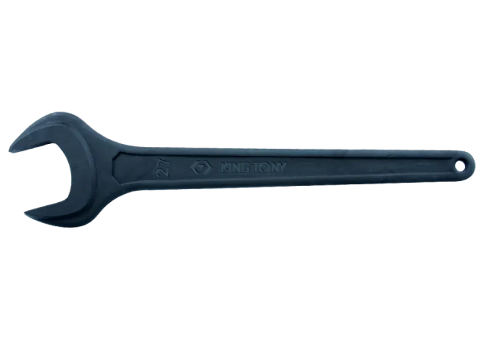 Klucz płaski jednostronny marki King Tony w rozmiarze 65 mm. Wykonany z wysokiej jakości stali chromowo-wanadowej, fosforanowany. Widełki dodatkowo wzmocnione (pogrubione) co umożliwia wykorzystanie klucza w pracach przy większym obciążeniu. Końcówka rękojeści posiada otwór umożliwiający wpięcie taśmy/linki na narzędzia do pracy na wysokościach co zapobiega jego upadkowi, umożliwia również przechowywanie na haczyku w warsztacie. Narzędzie spełnia normę DIN 894. Długość klucza: 470 mm.