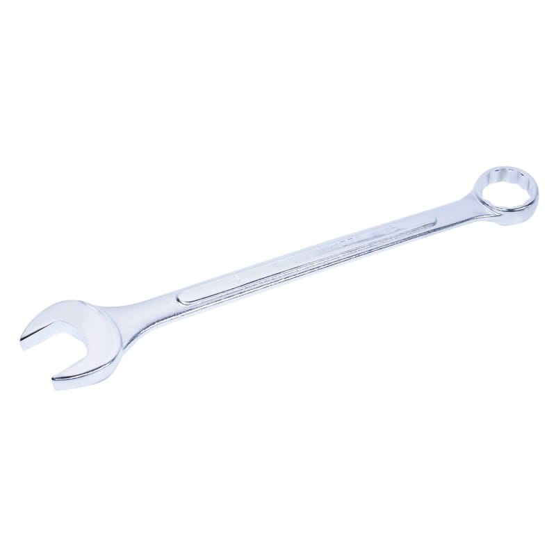 Klucz płasko-oczkowy w rozmiarze 75 mm. Całkowita długość klucza 715 mm. Klucz chromowany. Część oczkowa odchylona o 15 stopni w porównaniu z linią klucza, część płaska pochylona o 15 stopni w odniesieniu do linii klucza. Karta produktu - 1071-75